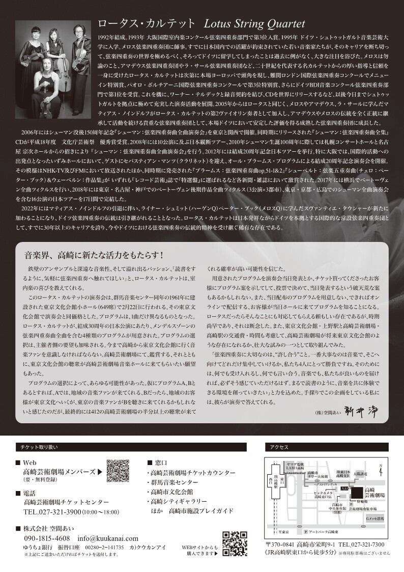 ロータス・カルテット結成30周年記念コンサート 全席指定