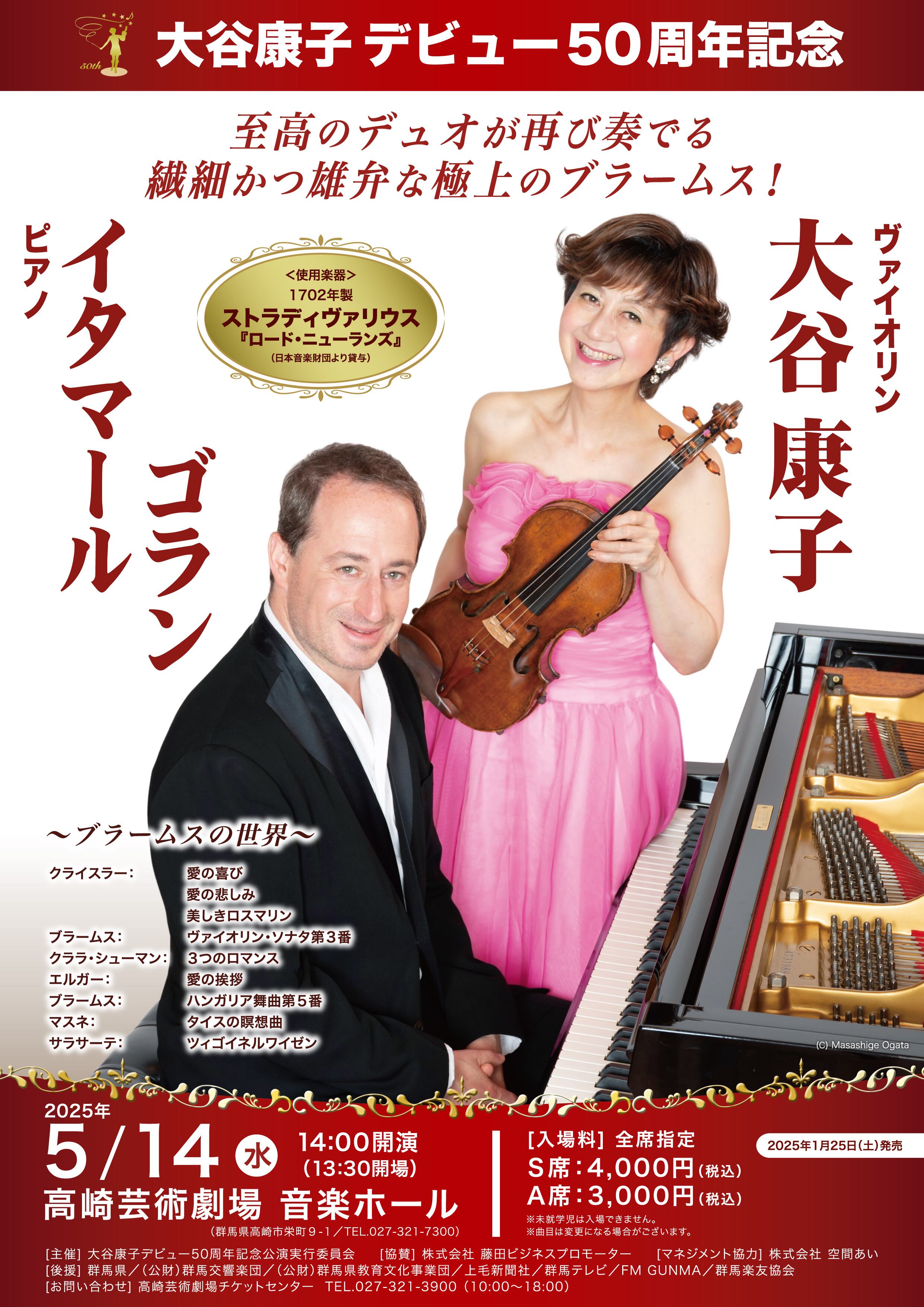 「大谷康子デビュー50周年記念コンサート 大谷康子 イタマール・ゴラン デュオリサイタル ~ブラームスの世界~」を開催する。高崎芸術劇場では、